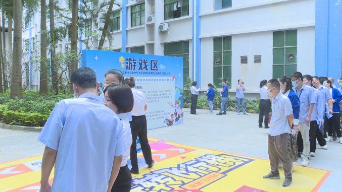 上午9点,在宝龙街道比亚迪工业园区内,飞行棋、投壶两个游戏区域吸引了不少工友前来参加。从事卷绕机操作的朱巧林早早前来排队参加挑战,在收获奖品的同时,也对职业有可能带来的隐患,有了一定的了解。