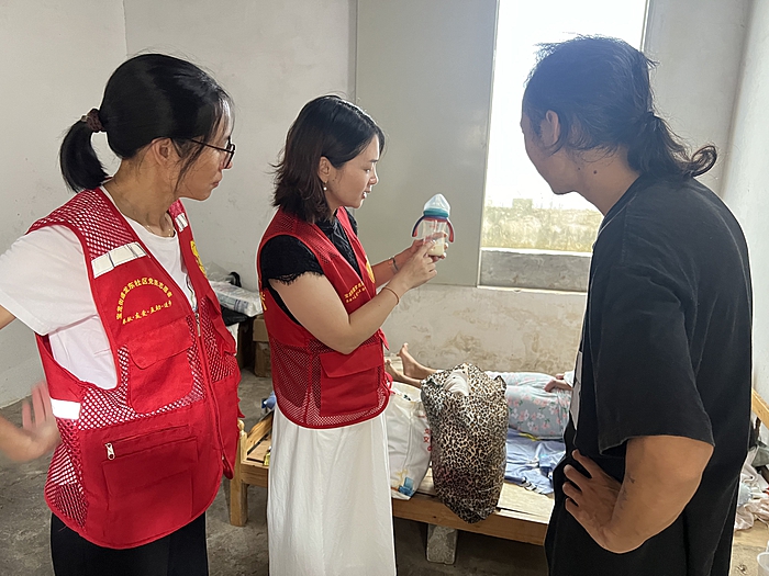 8月19日,社区与社康工作人员联合行动,亲自前往产妇家中进行探视。简陋的居住环境、短缺的生活物资令人揪心。通过深入交流,工作人员了解到新生儿父母均为外来务工人员,目前生活面临一些困难。社康工作人员为母婴进行了基础体检,传授了科学的母婴护理知识。社区工作人员带来了食品、被褥、尿不湿等基本生活物资,为这个小家庭带来希望。
