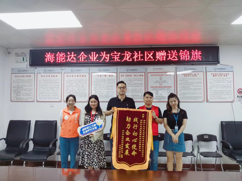 近日,深圳市海能达通信有限公司工会主席,广东省五一劳动奖章获得者杨安荣来到社区赠送锦旗,感谢宝龙社区的支持并表示,“今年,宝龙社区工联会积极推动五一劳动奖项申报,发动职工参与奖项评选,给我们一线职工很大的鼓励。接下来,我们将根据工会集体协商等工作开展进行部署和落实,为职工争取应有的保障。”