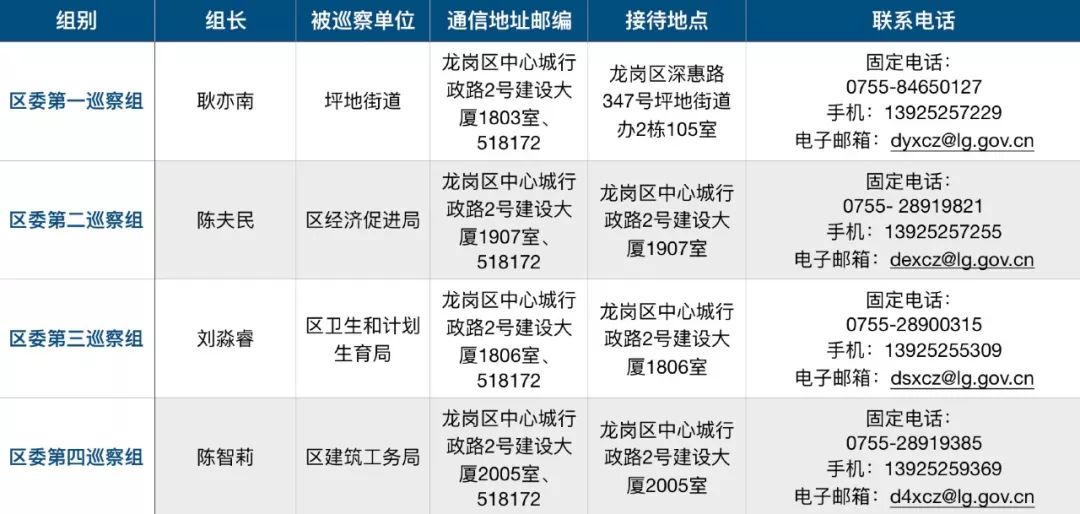 本次巡察期间,区委各巡察组均设置了联系信箱、联系电话、接访场所等,主要受理反映被巡察单位党员干部的来信来电来访,重点是关于违反政治纪律、组织纪律、廉洁纪律、群众纪律、工作纪律、生活纪律等方面的举报和反映,其他不属于巡察受理范围的信访问题,将按规定由被巡察单位和有关部门处理,欢迎广大干部群众反映情况和问题线索。