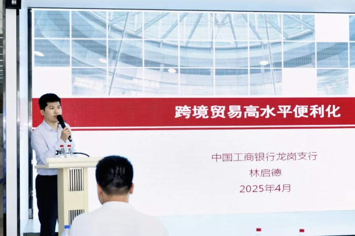 工商银行龙岗支行国际业务部负责人林启德为大家带来《跨境贸易的高水平便利化》,他系统梳理了当前外汇市场走势,深入解析了企业汇率风险管理策略,详细介绍了跨境贸易便利化服务举措,并重点推介了面向中小微企业的普惠融资产品体系,为外贸企业提供了全方位的金融解决方案。