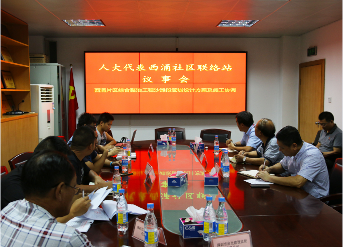 8月4日,南澳办事处西涌社区人大代表社区联络站举办了一场以“西涌片区综合整治工程沙滩段管线设计方案及施工协调”为主题的代表议事会活动,邀请了新区城市管理和水务局、建筑工务局、南澳办事处、西涌社区、西涌股份合作公司、深圳市启光建设监理有限公司、深圳市兴班建筑工程有限公司、深圳市水务规划设计院有限公司等负责人到社区联络站与人大代表共同商议,聚焦发展,关注民生。