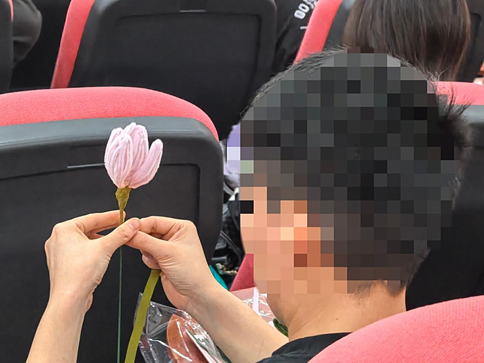授课老师还为社矫对象带来别开生面的手工编织花束教学课。在老师的悉心指导下,大家化身“花艺设计师”,一步步跟着老师的示范,从拧捏、卷边到粘贴、包装,认真制作着郁金香花束。编织花束不仅锻炼了大家的动手能力,更激发大家积极向上的生活态度。
