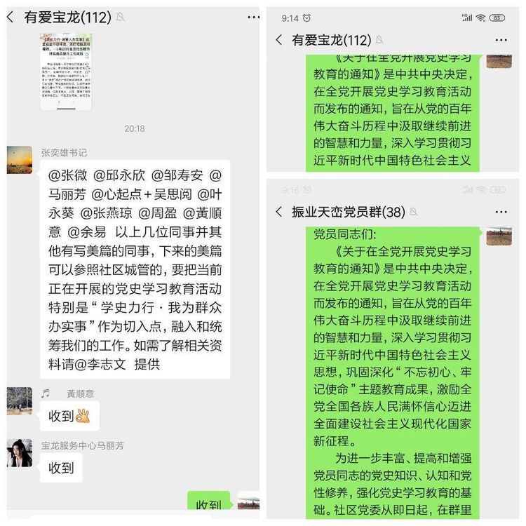 此次利用微信视频录制“党史学习教育——我来讲”的视频,由社区书记、两委班子成员带头,到各支部书记、党员,每人录制一段讲四史短视频,在微信平台发布,并在党员群众中广泛传播。
