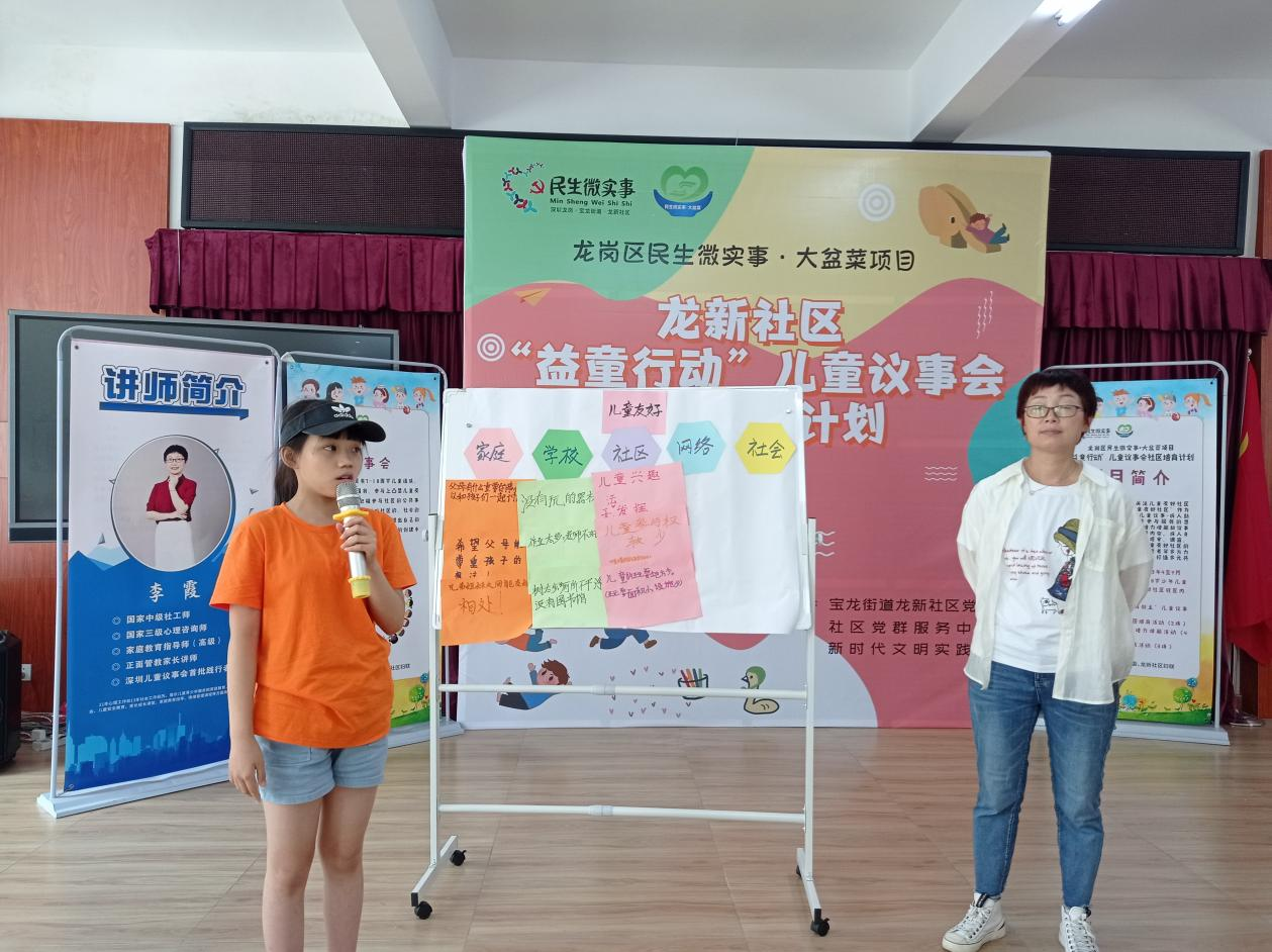 据悉,龙新社区“益童行动”儿童议事会社区培育计划项目是由民生微实事·大盆菜资金支持,也是深圳市落实儿童友好社区的建设项目。该项目旨在通过引导儿童通过走到户外开展调研、发现问题,增强“小主人翁”意识,真实有效地参与到社会实践、社区治理中来。同时,在调研过程中,还能锻炼儿童的观察能力、沟通能力、实践操作能力等,保障儿童参与城市治理和表达的权利。