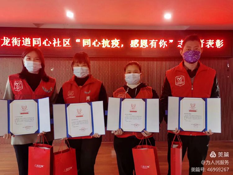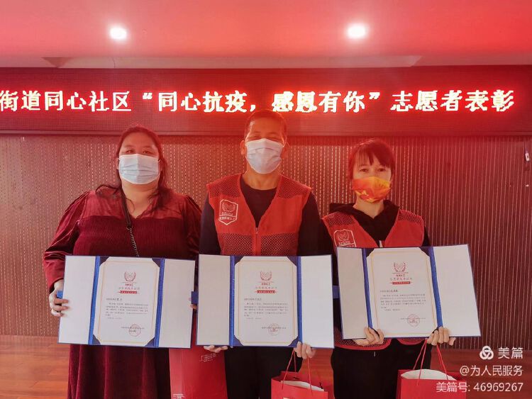 在疫情防控期间,同心社区涌现了一批优秀的防疫志愿者,他们在疫情期间挺身而出、不畏艰险,充分展现了志愿者的奉献精神。2月27日下午,同心社区为感谢志愿者们的无私奉献开展了“同心抗疫,感恩有你”志愿者表彰。