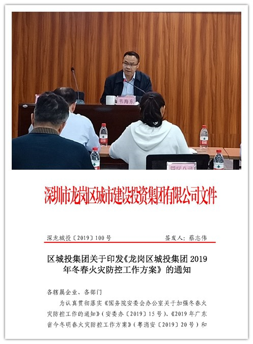 2019年12月23日下午,受集团董事长蔡志伟的委托,集团副总经理韦海东组织召开了2019年冬春火灾防控工作动员会,集团各部门及辖属各企业负责人、安全分管负责人、安全主管及相关管理人员出席了会议。会上首先由集团安全办传达了国务院、省、市和区关于冬春火灾防控工作的部署及要求,发布了集团冬春火灾防控的工作方案及责任清单。接着,韦海东同志传达了蔡志伟同志关于冬春火灾防控工作的指示要求,分析了当前季节和时段火灾防控工作的紧迫性,进一步强调了以下几点:一是提高认识,牢固树立安全红线意识和坚守安全底线,重预防、抓源头,杜绝火灾事故;二是各部门和辖属企业要严格落实消防安全责任制,履行企业消防安全主体责任;三是加强应急队伍管理,对于火灾做到早发现、早扑救、早消除;四是强化监管,严肃追责,督促冬春火控方案抓实落地。