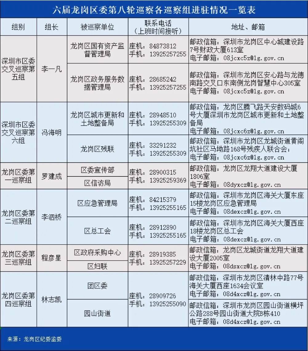 经区委批准,本轮巡察由深圳市区委交叉巡察第五组和第六组、4个区委巡察组对区委宣传部、区应急管理局党组、区国有资产监督管理局党组、区信访局党组、区政务服务数据管理局党组、区城市更新和土地整备局党组、区总工会党组、团区委党支部、区妇联党组、区残联党组等10个单位党组织开展常规巡察,对园山街道党工委、区政府采购中心党组等2个单位党组织开展巡察“回头看”。