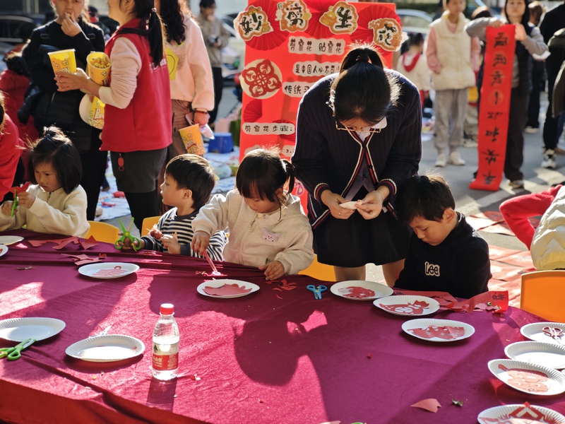 党群社工共邀请了程百俊老师团队、图腾艺术中心、老顽童书法、七彩童星书法团体,刘福生、许超武、黄新能等20余名书法大师挥毫泼墨,为社区居民奉献了588副寓意吉祥的对联和1099个“福”字,让居民深切感受到了中华优秀传统文化的魅力和新春的喜庆氛围。此外,活动还融入了多种元素,为居民带来了更加丰富多彩的体验。吖咪贝贝托育中心的剪纸艺术为孩子带来了欢乐,赵老师美业的公益剪发、修眉服务则让居民们焕然一新。携程旅游捐赠的100份精美挂历,更是让节日氛围愈发浓厚。
