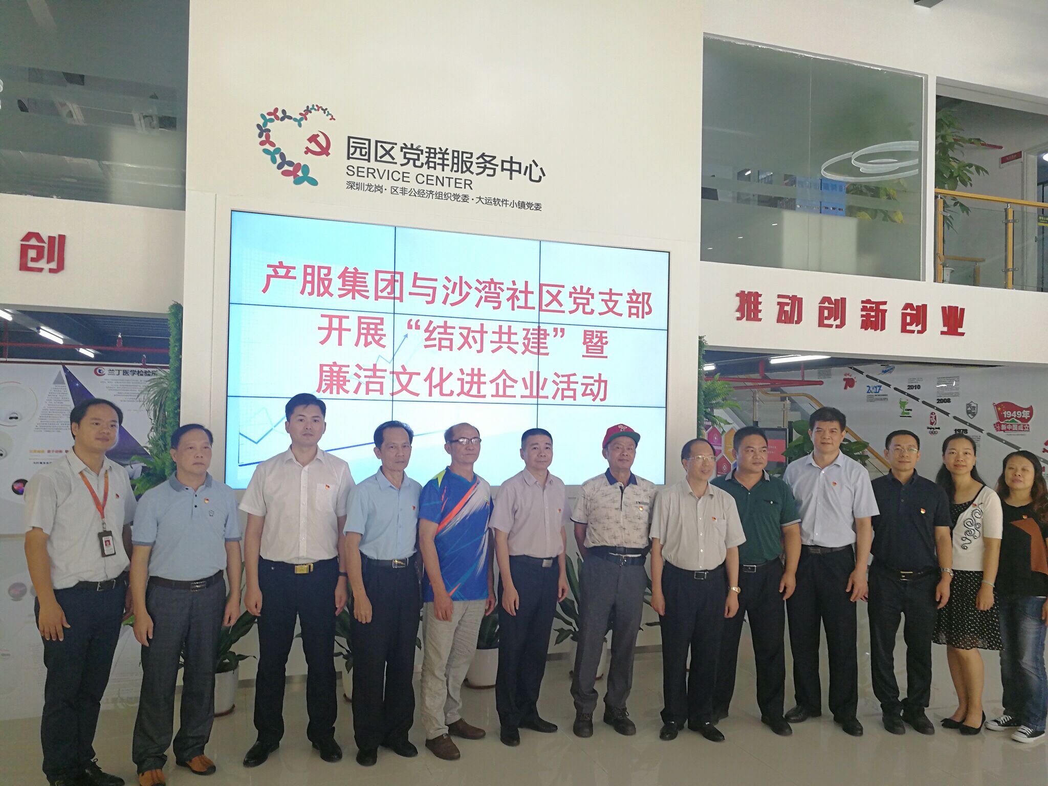 为深入贯彻落实党的十九大精神,推动党的全面领导在基层落实,切实帮助解决基层社区实际问题,按照区委组织部统一部署及集团领导班子“进社区、察民情、促发展”主题活动工作安排,9月14日上午,区产服集团与沙湾社区党支部在大运软件小镇开展庆祝十一“结对共建”暨廉洁文化进企业活动。集团党总支书记、董事长罗光亮、副总经理王志雄、沙湾社区工作站站长潘书锋、社区党支部和国高育成公司党支部党员参加了活动。