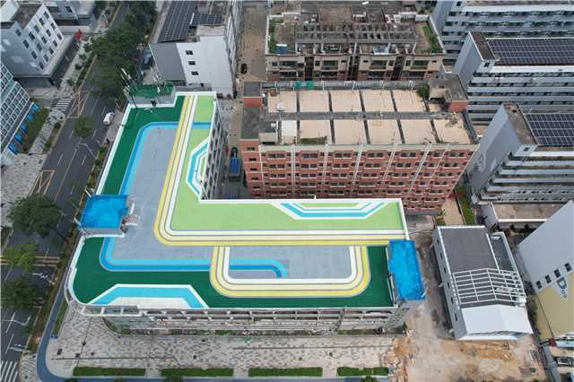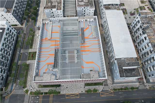 在本次试点项目中,大运AI小镇片区以望海岭山体最高点为俯瞰点,通过重点屋顶改造、屋顶光伏铺设等提升项目,实现了屋顶空间的活化利用及彩绘刷漆、光伏铺设等多元化提升。项目设计以低碳增绿、节能增效、空间挖潜为目标,将第六立面作为现代化治理的重要创新举措,致力于打造彰显龙岗未来产业发展成效的低碳高效创新园区。