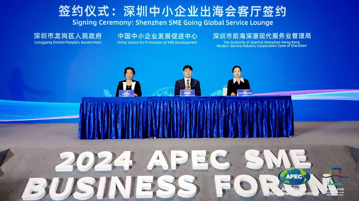 12月18日,2024年亚太经合组织(APEC)中小企业工商论坛在深圳举办。活动现场同步举办深圳市中小企业出海会客厅启动仪式,中国中小企业发展促进中心和前海管理局、pg电子官网 人民政府就合作建设深圳市中小企业出海会客厅签署合作协议,将设立全国首个中小企业出海会客厅,以“一东一西”形式分别落户龙岗和前海。