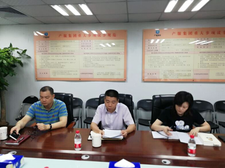2018年8月6日上午,区产服集团党总支书记、董事长罗光亮同志主持召开了集团党总支2018年第21次(扩大)会议,传达学习区委六届六次全会精神。集团党总支副书记罗洪忠,委员刘艳,集团各部室、辖属各企业主要负责人参加了会议。