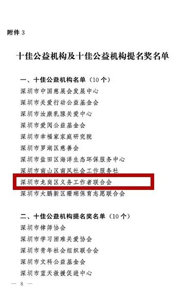 第十七届深圳关爱行动系列推选活动获奖名单:
