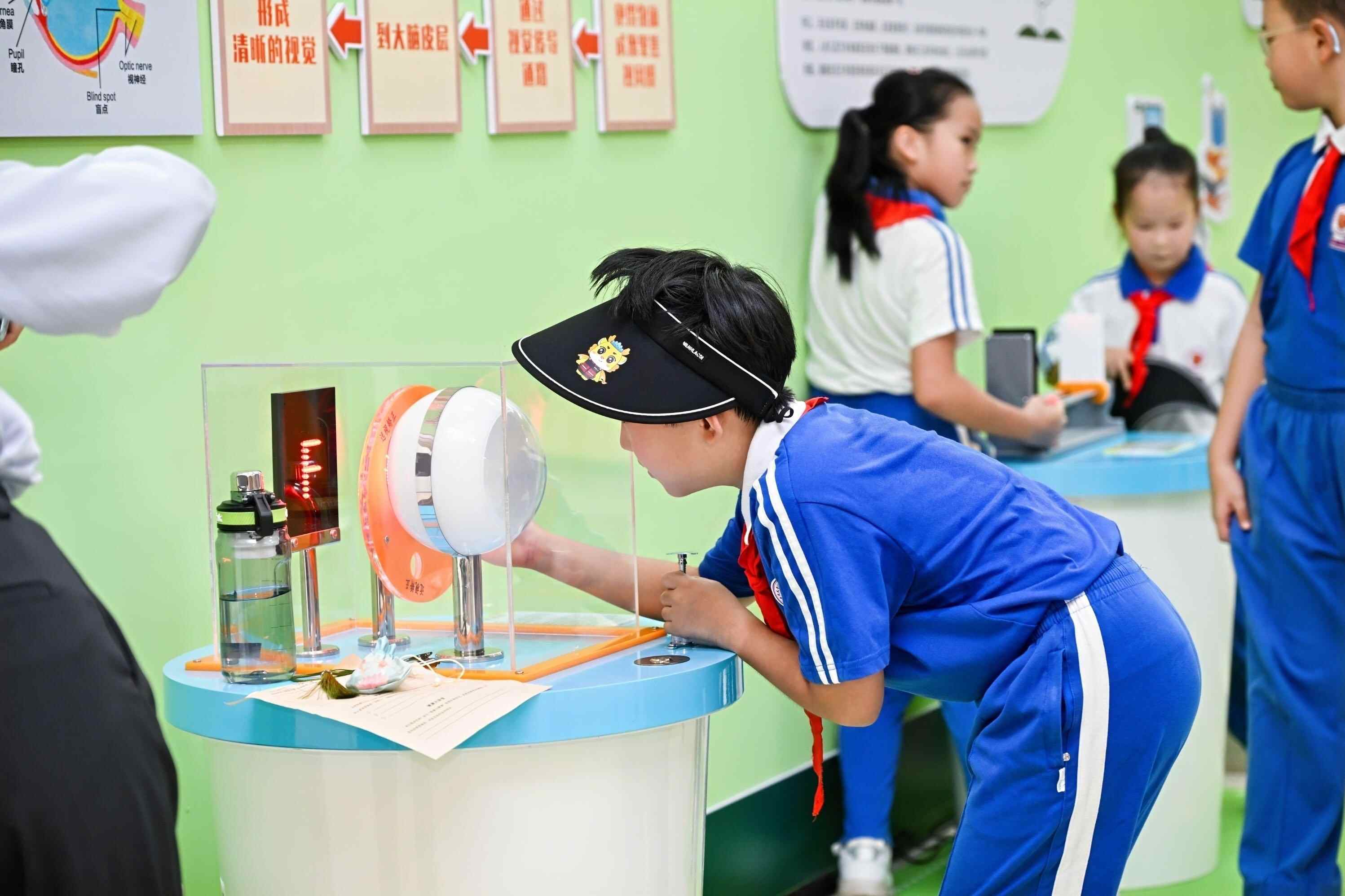 据介绍,该科普馆集科普教育、互动体验于一体,以青少年眼健康为特色,总面积415平方米,设置视力科普体验区、健康阅读区、模拟标准教室、健康大讲堂等功能区域,现场还有眼球成像、小孔成像、视力体验等新颖有趣的体验式项目,未来将通过专家宣讲、互动体验、科普展览、学习培训等形式,面向中小学生群体,进行眼健康和全生命周期科普,寓教于乐地向公众普及健康知识。