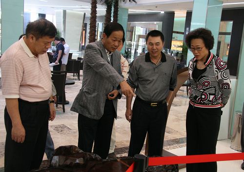 在宝福李朗珠宝文化创意园,该园负责人向区委常委、宣传部长熊国伟,副区长吴以环等介绍“香山九老”玉山。